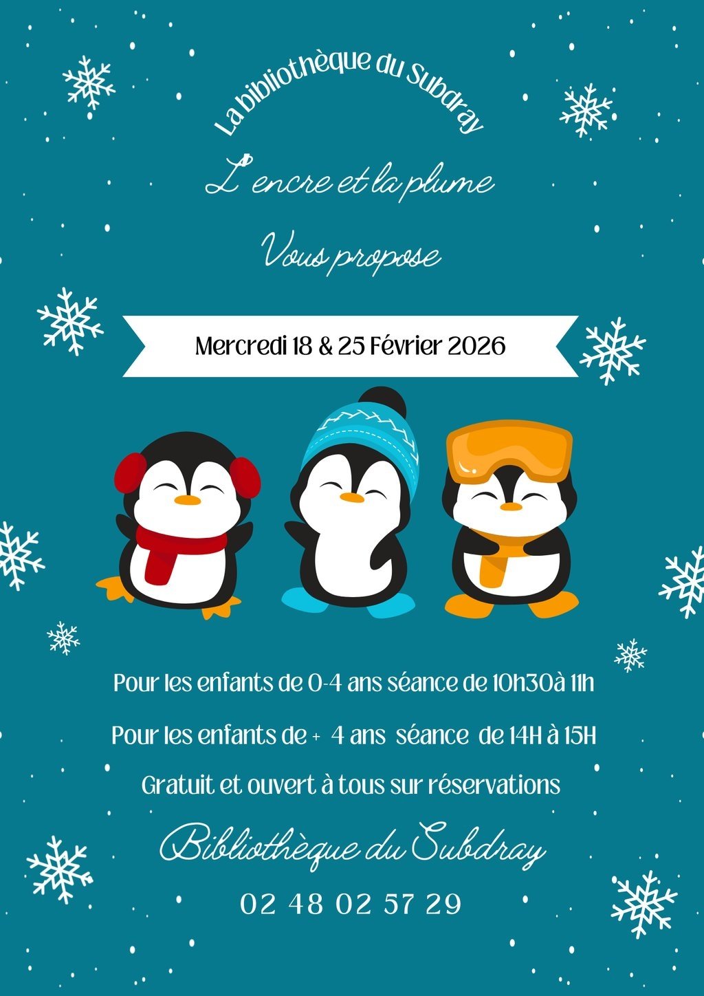 La bibliothèque "L'Encre et la Plume" propose des animations à destination des enfants les mercredis 18 et 25 février :